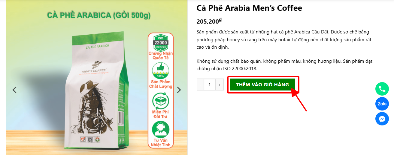 Khách hàng nhấp vào nút “Thêm vào giỏ hàng” để đưa sản phẩm cần mua vào giỏ hàng, thao tác này khách hàng có thể làm tương tự đối với các sản phẩm khác cần mua.