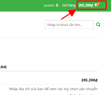 Sau khi khách hàng chọn sản phẩm cần mua hoàn tất, khách hàng có thể kiểm tra lại đơn hàng bằng cách rê chuột vào giỏ hàng và nhấp vào nút “Xem giỏ hàng”.
