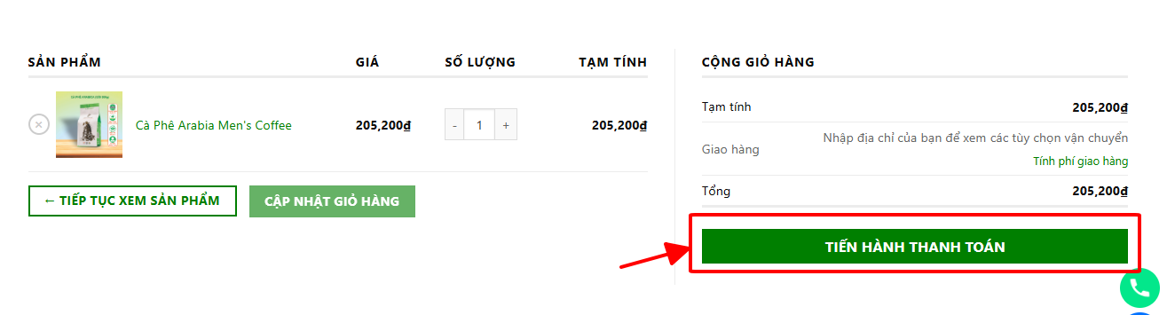 Sau khi kiểm tra đơn hàng xong, khách hàng chọn vào nút “Tiến hành thanh toán”.