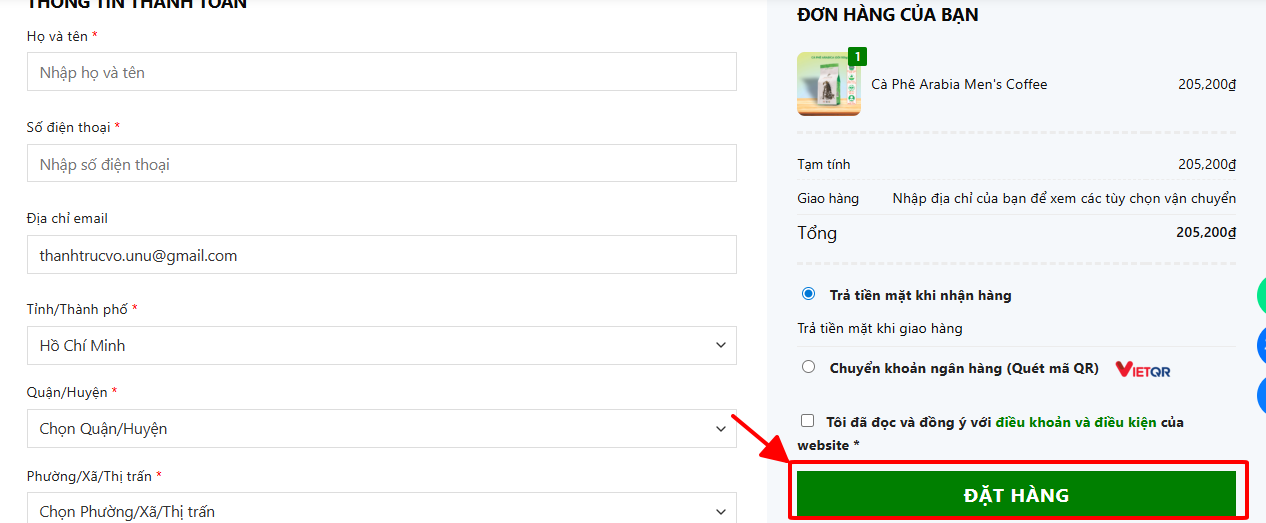 Sau khi điền đầy đủ thông tin ở bước trên hoàn tất, khách hàng sẽ nhận thông báo đơn hàng thành công.