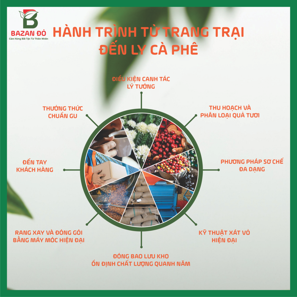 Sản phẩm được sản xuất từ những hạt cà phê Robusta Buôn Ma Thuột – Đắk Lắk và Arabica Cầu Đất – Lâm Đồng. Được sơ chế bằng phương pháp Honey và rang trên máy Hotair tự động nên chất lượng sản phẩm rất cao và ổn định.